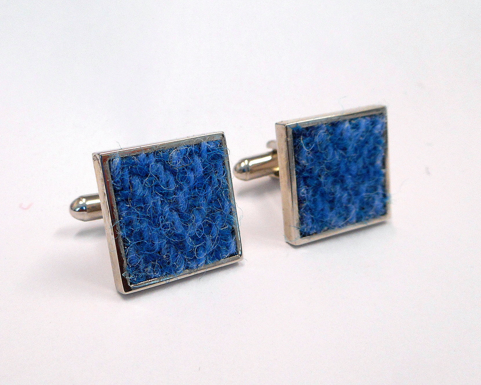 These beautiful cufflinks are in silver finish with richly coloured two tone blue Harris Tweed, measuring overall 20mm ( 7/8") square, with the central tweed area approx. 17mm square