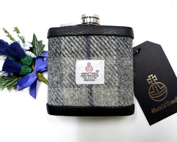 Looking for the perfect luxury gift ? This rugged personalised Harris Tweed flask with any name or title in a beautiful satin lined gift box makes a superb quality present for Christmas, birthday, retirement or any other occasion. Choose from a wide selection of tweeds in many colours and patterns and your own choice of script, name or message, in a choice of fonts including celtic and Glasgow font in the style of Rennie Mackintosh, or more traditional styles if preferred, set into an attractive bronze toned setting with interlacing design all round. Or choose a simple monogrammed flask with initial. All make a unique gift.