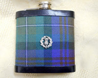 Isle of Skye tartan hip flask from Tweed with a Twist, with pewter thistle mens gift, ideal for Christmas, retirement or wedding party gift.